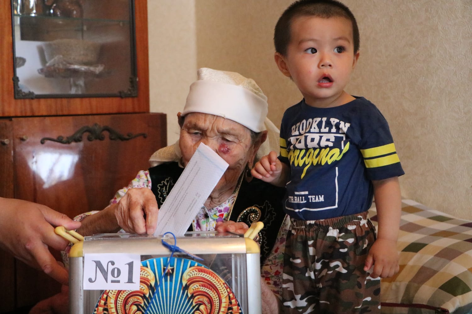 Представители участка референдума №148 доставили в дом жительницы 1922 года рождения ящик для переноски и вручили подарок Ханым Суюндиковой.