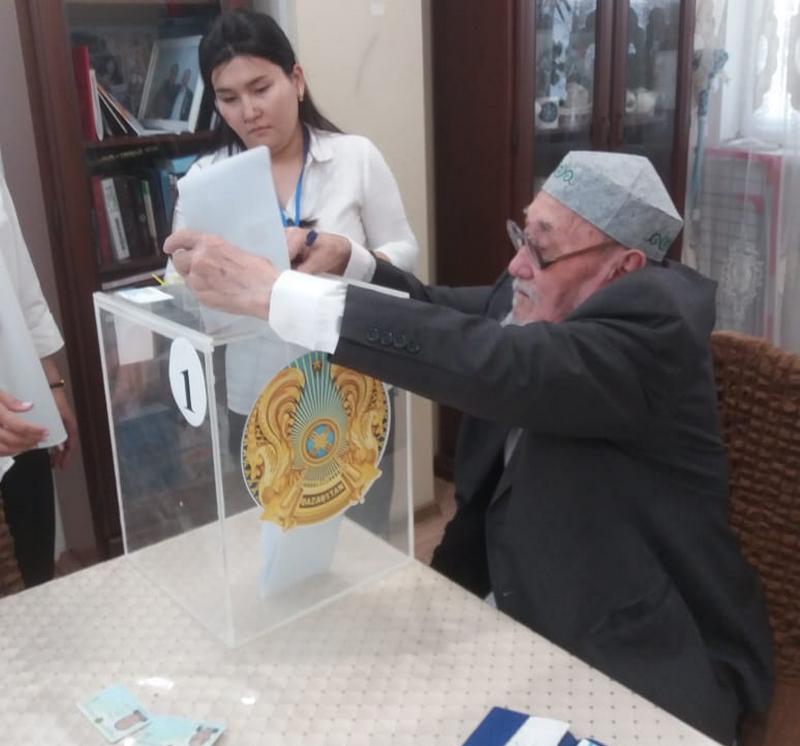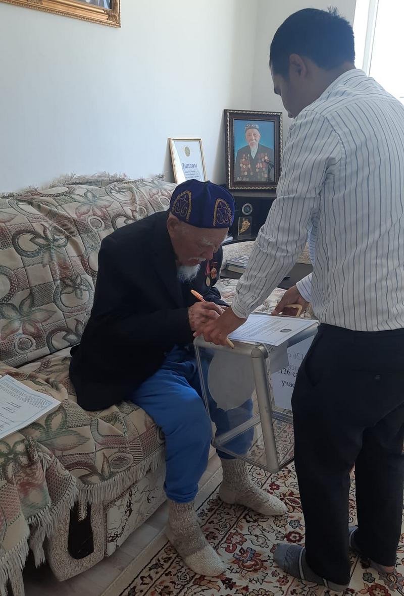 Члены участковой комиссии №64, расположенной в школе №21 города Актау, пришли к Бисену Бокаеву домой, где ветеран, сделав свой выбор, опустил бюллетень в урну.