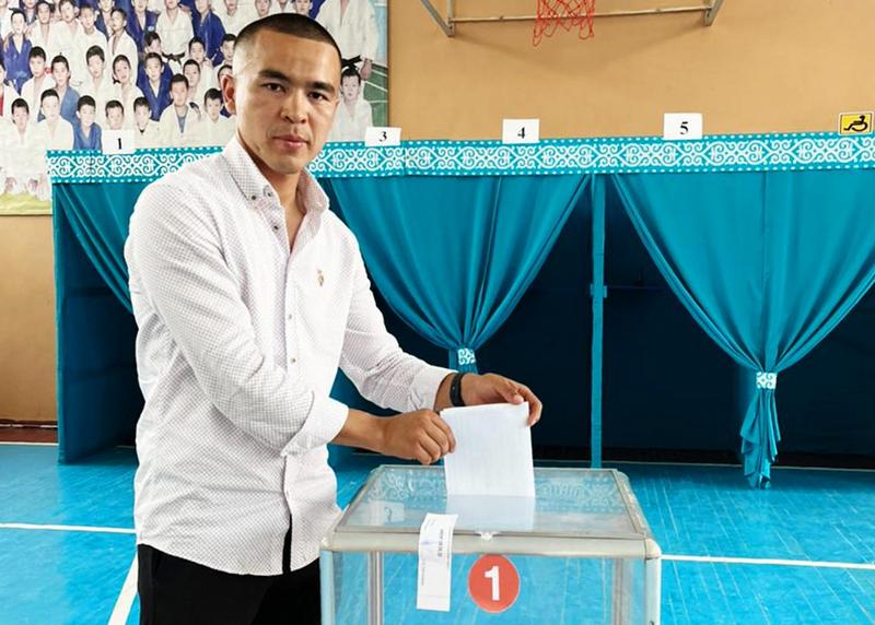 На республиканском референдуме Тупкараганский кикбоксёр Селбай Унербек, недавно вернувшийся с Кубка мира с победой, пришёл на свой участок и сделал выбор.