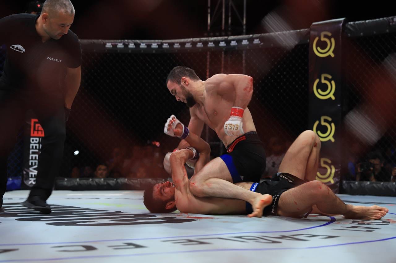 В главном бою совместного турнира «Naiza» и «EAGLE FC» сошлись россиян Гамзат Хирамагомедов и казахстанский спортсмен Дауреном Ермеков, которые боролись за временный пояс «EAGLE FC». Победу техническим нокаутом во втором раунде одержал казахстанский спортсмен.