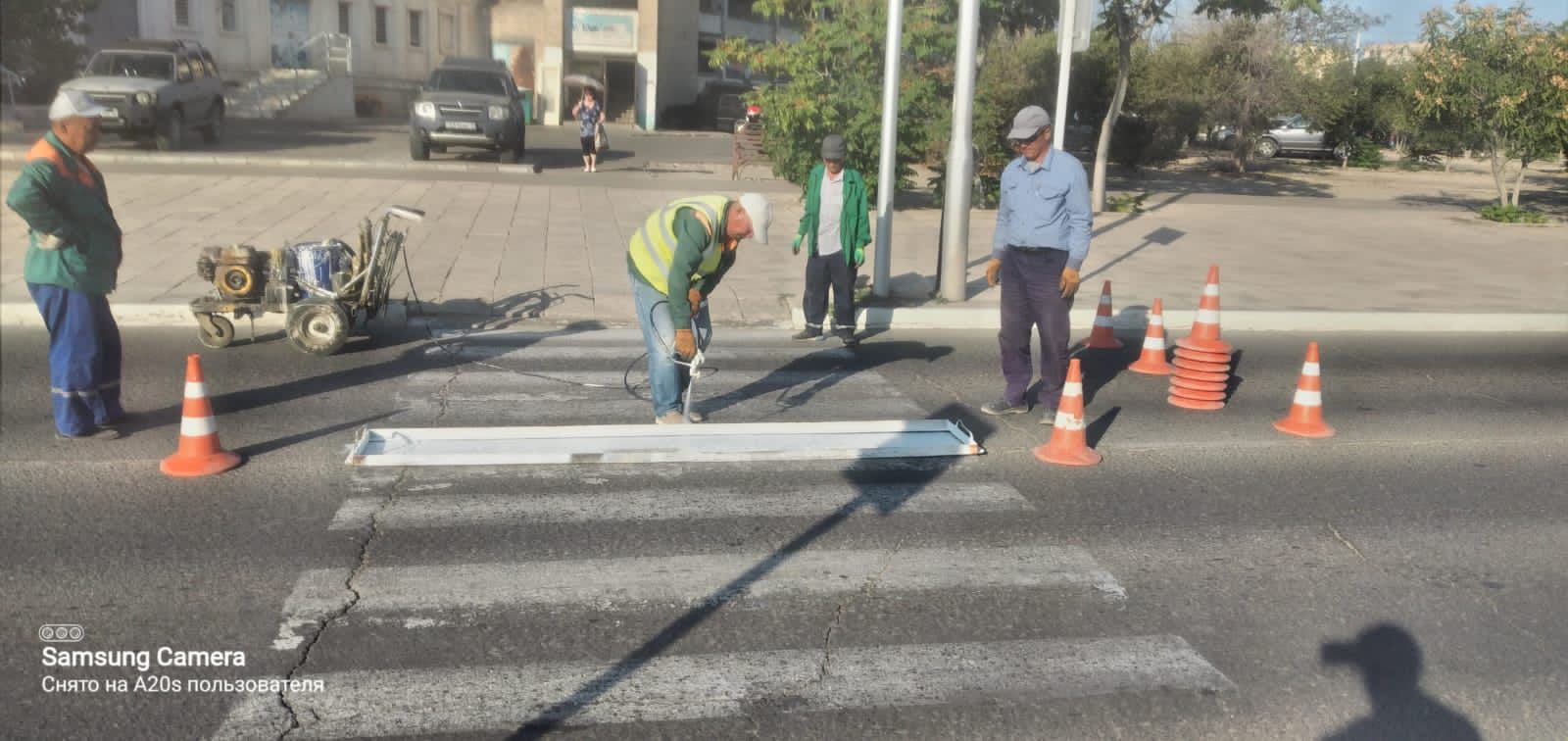Так, в соответствии с утвержденным графиком по городу, в текущем месяце дорожные разметки появились на пешеходном переходе между 16 и 19 микрорайонами напротив ЖК «Рояль Хаус», от 12 дома 14 микрорайона до резиденции «Самал», от стадиона «Каспий» в 1 микрорайоне до пересечения с гостиницей «Рахат».