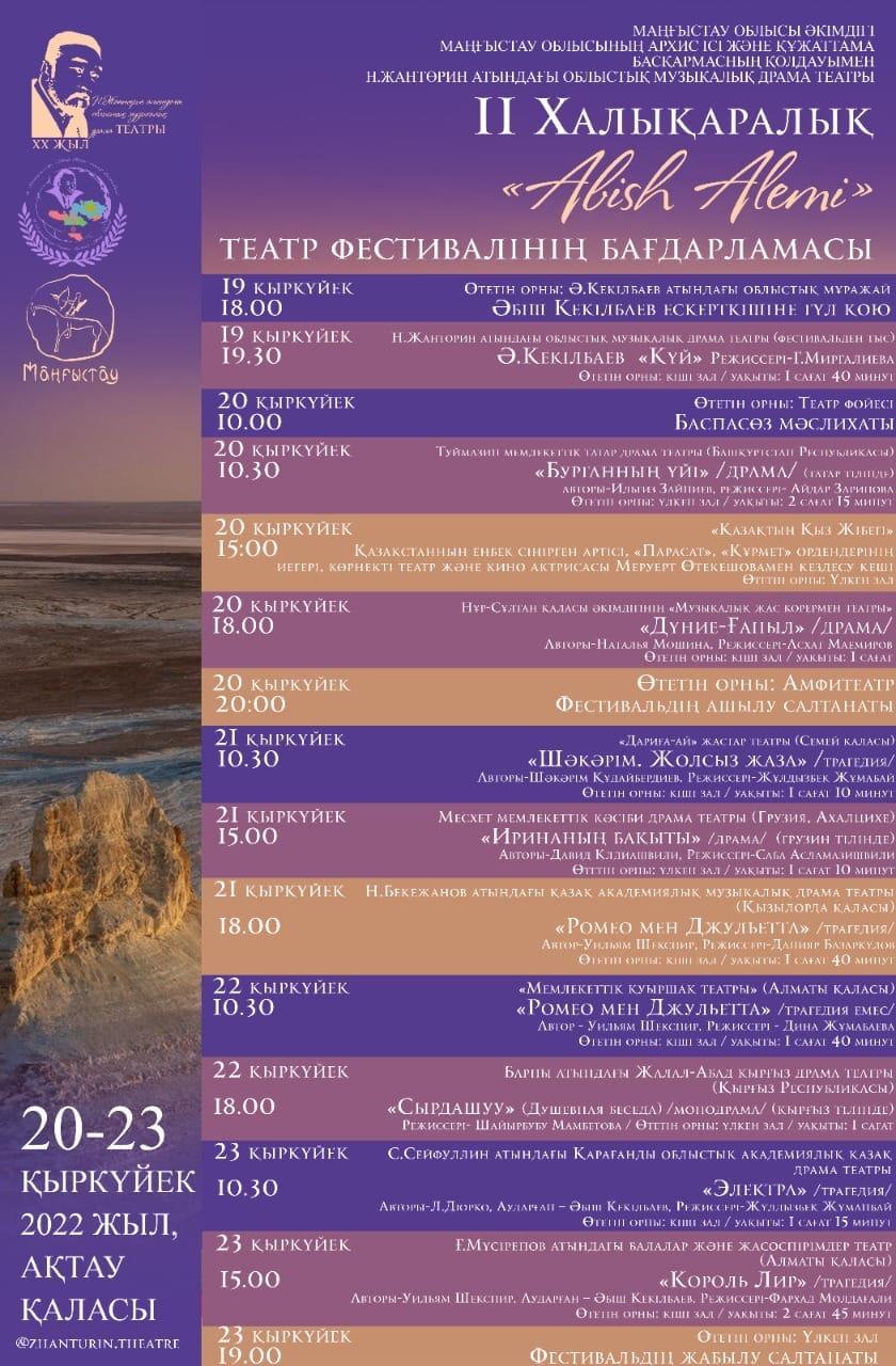 - Абиш - это не только Мангистау, Абиш - это не только Казахстан, это мир. Поэтому название «Әбіш әлемі» соответствует духу фестиваля. Мы должны прославлять произведения писателя, которые пробуждают в нас национальную веру, сознание. Фестиваль стимулирует театральные коллективы к новому успеху, - сказал художественный руководитель Казахского национального академического театра драмы имени Мухтара Ауэзова Асанали Ашимов.