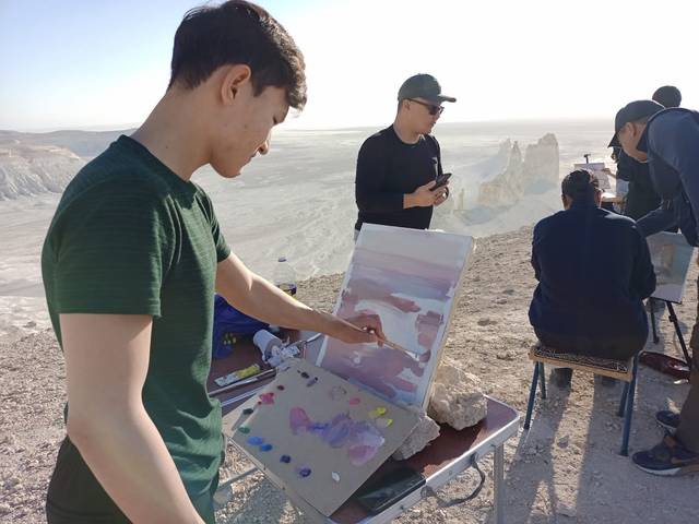 Добавим, что цель мероприятия - поддержать талантливых художников региона, развивать их оригинальные способности и знакомить с тонкостями написания этюдов на мангистауской земле. Это также обмен опытом.