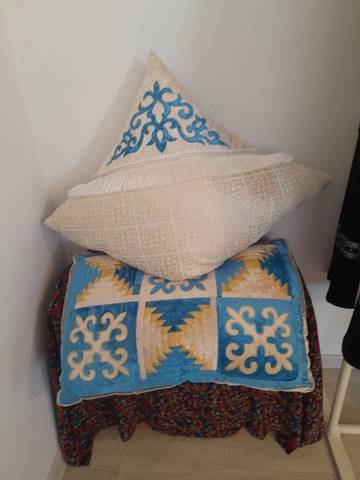 А Маржангуль Жуманазарова шьёт приданое невестам, бешпент, камзолы и платья с национальными узорами.