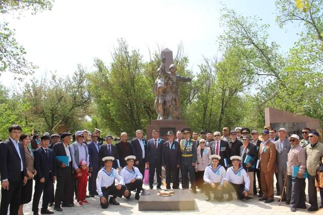 В мероприятии приняли участие ветераны, аким района Рахат Елтизаров и жители, которые торжественно возложили цветы на площади в центральном парке.