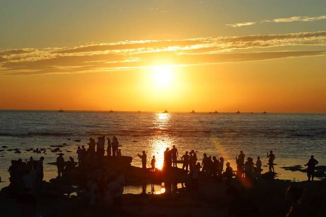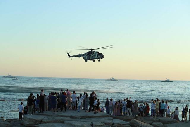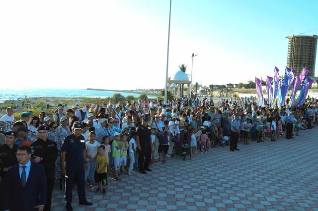 В сопровождении звена вертолетов МИ-8 авиации вдоль берега города парадным строем прошли пограничные сторожевые корабли Департамента Пограничной службы КНБ по Мангистауской области.