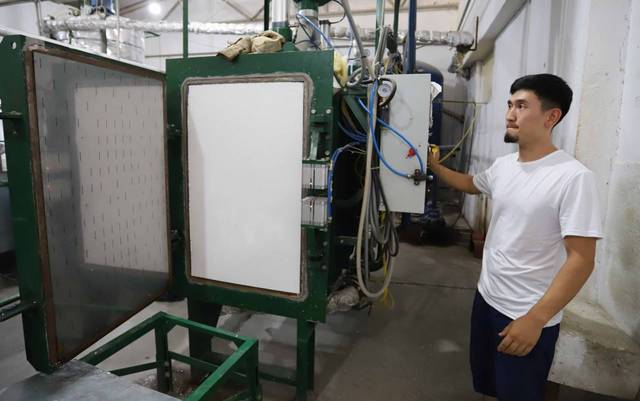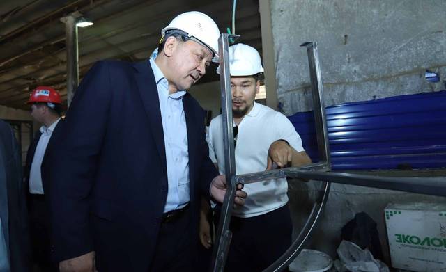 Далее поездка продолжилась на предприятии «Адиль Фасад» по производству пенополистирола в селе Атамекен. Компания в рамках программы «Нур Капитал» получила 22 млн тенге, а также 20 млн тг. через фонд «Даму». Предприятие в месяц производит 30 тонн пеноблоков, 30 тыс. кв. м термопанелей, 50 тыс. кв. м пеноблоков и 6 тыс. кв. м теплобетонной продукции. В дальнейшем планируется увеличение производственной мощности предприятия.