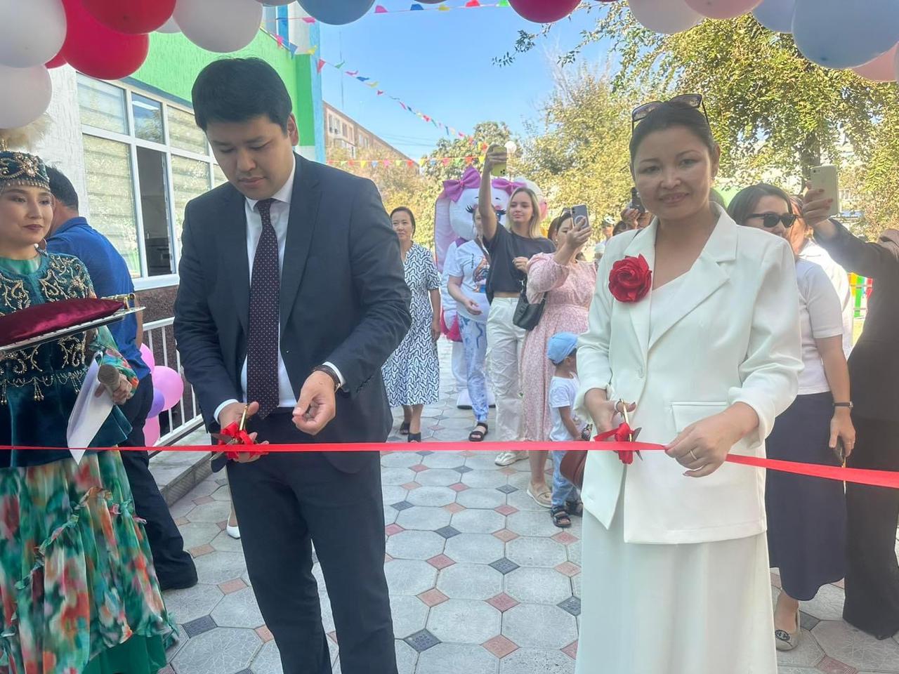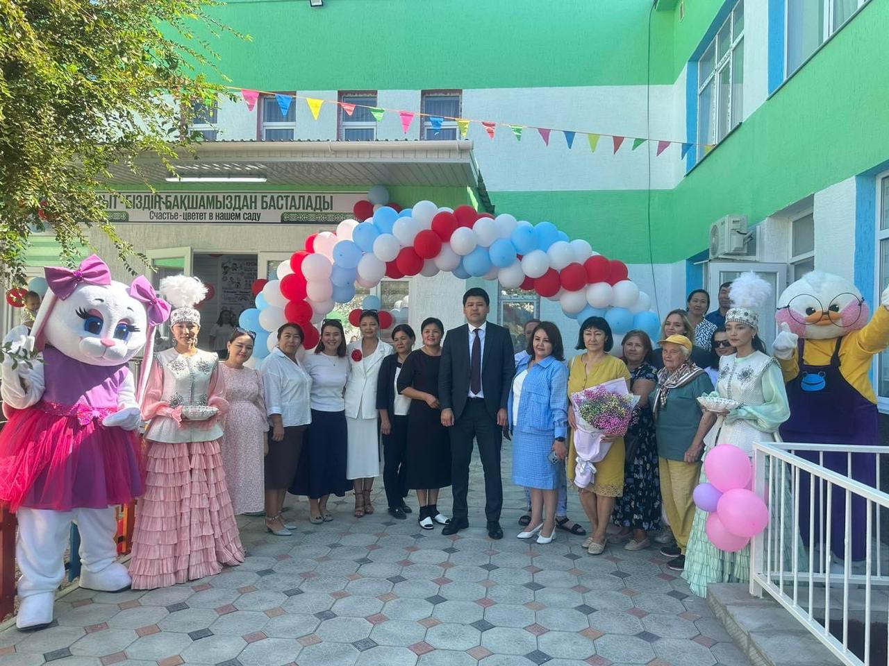 Новый детский сад передан в доверительное управление. На торжественном открытии, где приняли участие воспитатели и родители, воспитанница детского сада Томирис Бектурганова исполнила песню «Балабақшам».
