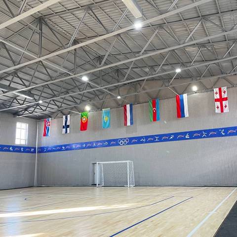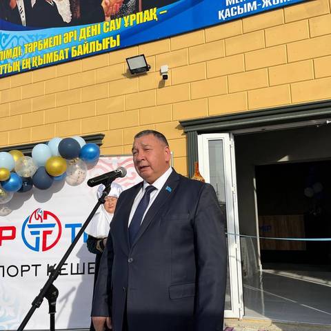 В спорткомплексе, позволяющем заниматься одновременно 400 спортсменам, открыты секции бокса, дзюдо, вольной борьбы, казакша курес, каратэ, футбола, волейбола, баскетбола, фитнеса. Объект построен предпринимателем Беккали Нарыновым, получившим кредит через государственную программу.