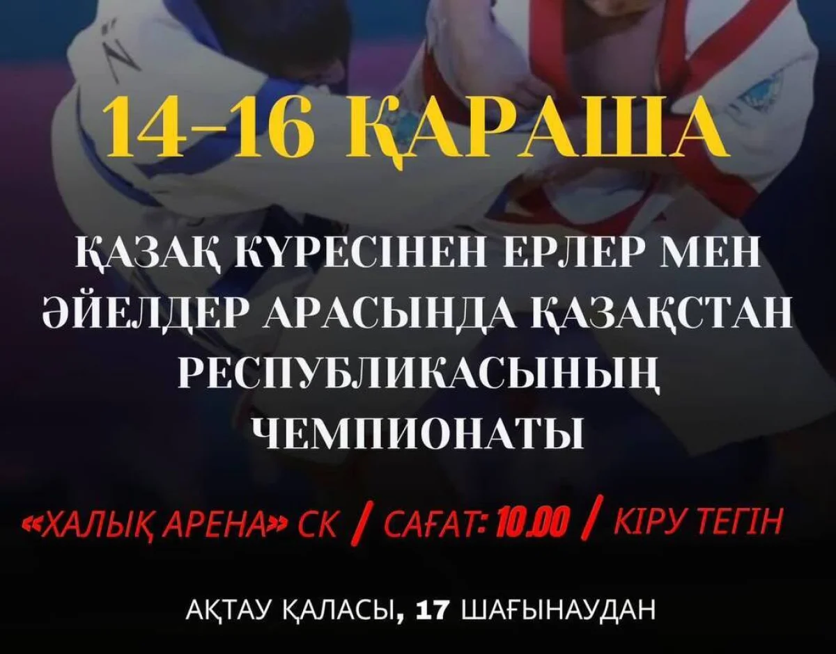 Чемпионат Республики Казахстан по қазақ күресі среди взрослых пройдёт 14-16 ноября в спортивном комплексе «Халық Арена». На ковёр выйдут порядка 500 борцов из всех уголков страны, сообщает Центр общественных коммуникаций.