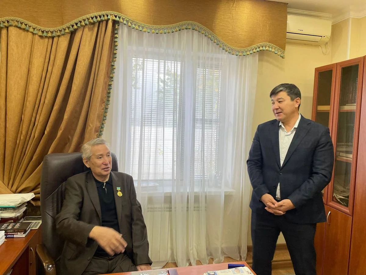 Сымбат Куанышулы, в свою очередь, поблагодарил его и вручил двухтомный энциклопедический сборник «Қазыналы Қарақия», в котором обобщена история района.