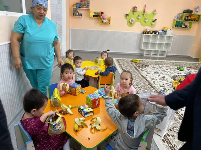Затем Сымбат Куанышевич вместе с заместителем акима района Манаром Тулегеновым и несколькими коллегами посетили детский дом, где подарили детям подарки.