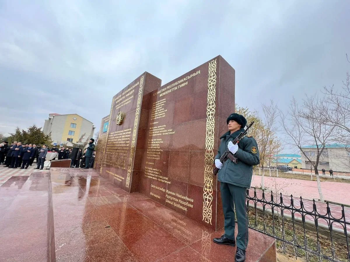 На Площади госсимволов установлен флагшток высотой 30 метров и поднят государственный флаг. Прозвучал государственный гимн. Установлена табличка с изображением герба и флага Республики Казахстан.