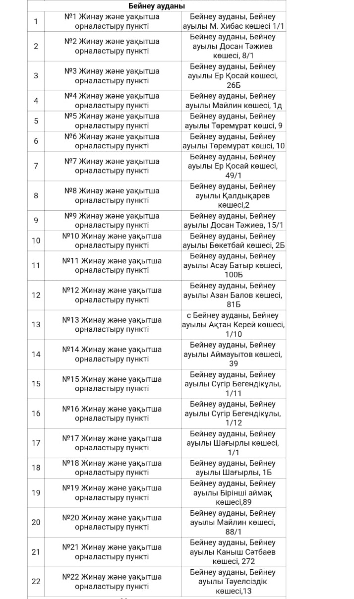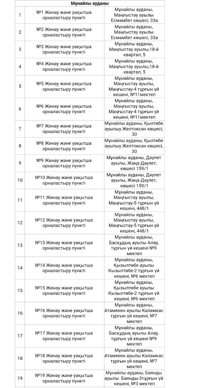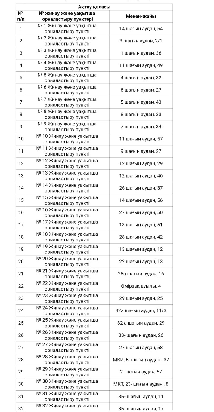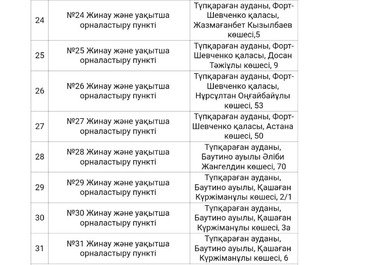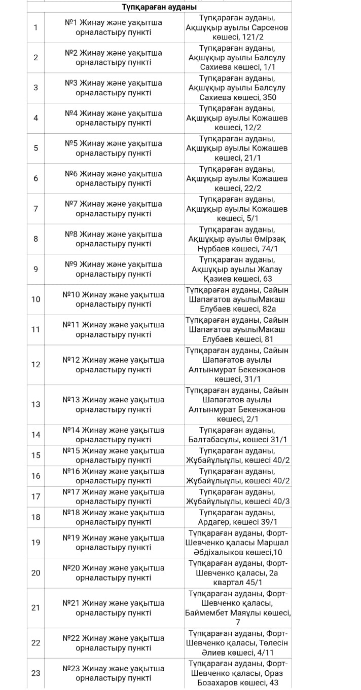 В паводковый период в Актау, Жанаозене и Мунайлинском, Тупкараганском, Бейнеуском, Каракиянском, Мангистауском районах подготовлено более 200 пунктов для временного размещения эвакуируемого населения в Актау. (Полный список локаций прилагаем).