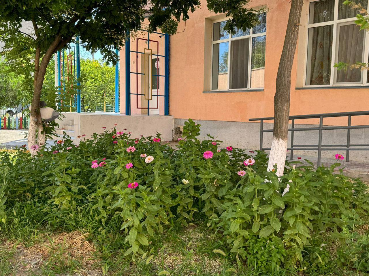 Работники ясли-сада вовлекают малышей в работу по озеленению и благоустройству. Во дворе ясли-сада растут розы, сирень, петунии, хризантемы и ромашки. Также на территории детского сада растут плодовые деревья - груши, вишни, яблоки и айва. По словам директора ясли-сада №60 «Ертөстік» Гульнары Шингалиевой, в озеленении территории принимают участие как садовник, так и сотрудники.