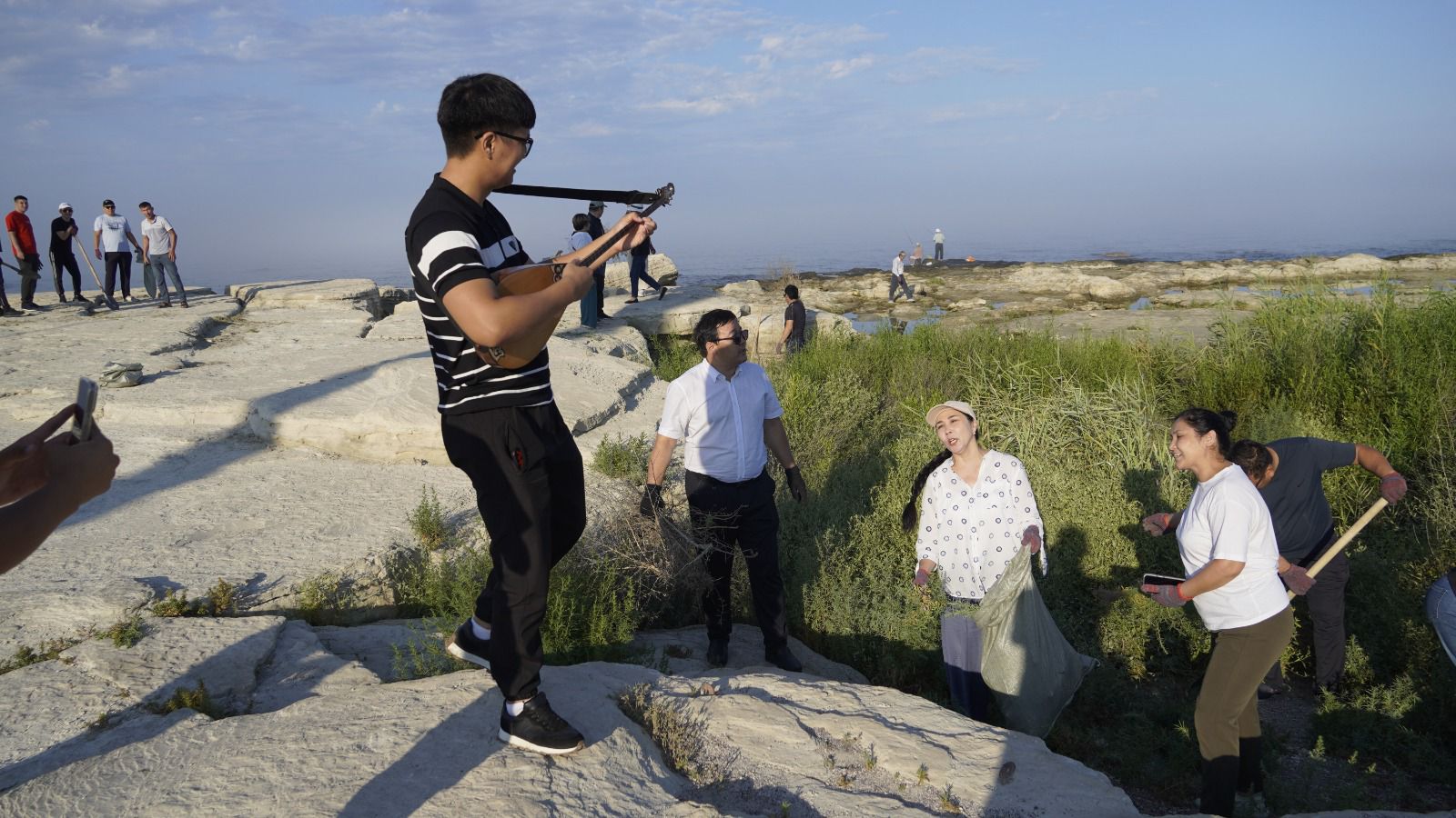 Экологическое мероприятие в Актау было организовано в особом формате. На берегу моря были установлены юрты, участникам акции были предложены горячий чай и еда. Для жителей была организована ярмарка сельскохозяйственной продукции.