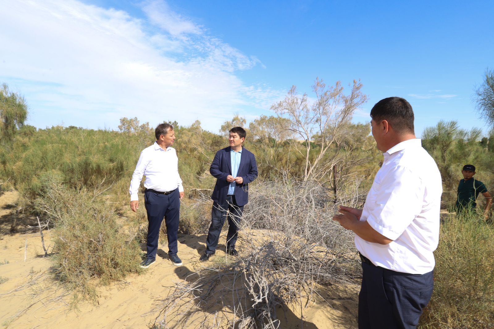 Также рабочая группа во главе с акимом области посетила территорию села Уштаган, где на 649 гектарах высажен саксаул черный. Здесь местный исполнительный орган проводит работы по  защите зелёных насаждений от вредителей. Аким области поручил строго контролировать состояние заповедной территории, ставшей зеленым оазисом.