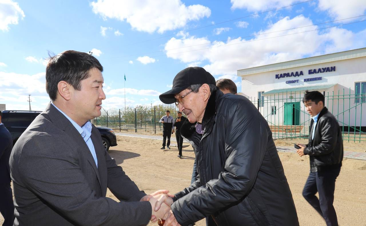 В ходе поездки аким в первую очередь посетил село Акшымырау с населением более 1300 человек и ознакомился с состоянием спортивного комплекса «Қаралда Палуан», состоящего на балансе «Общеобразовательной школы имени Тобанияза». Около 60 детей занимаются в различных спортивных секциях комплекса, сданного в эксплуатацию в 2017 году. Было сказано, что в настоящее время есть необходимость передачи комплекса на баланс управления спорта и проведения капитального ремонта.