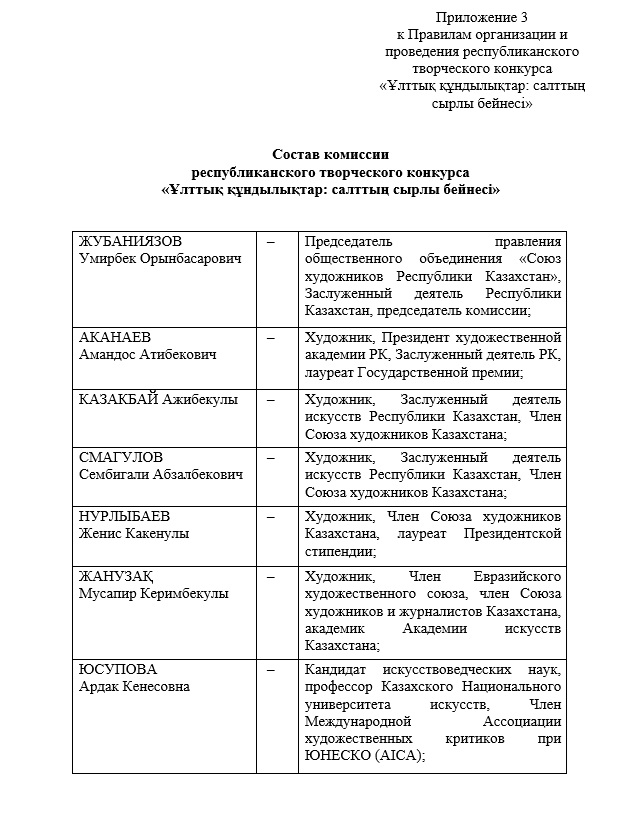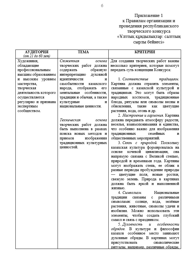 Правила проведения республиканского творческого конкурса «Ұлттық құндылықтар: салттың сырлы бейнесі»