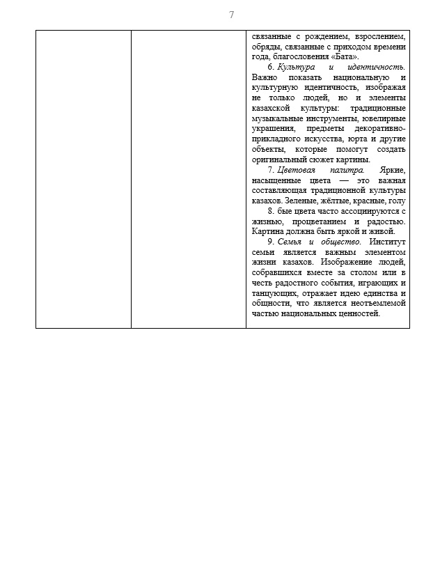 11. Основное тематическое направление для конкурса творческих работ (в жанрах: пейзаж, натюрморт, сюжетная картина): традиционные культурные ценности казахского народа.