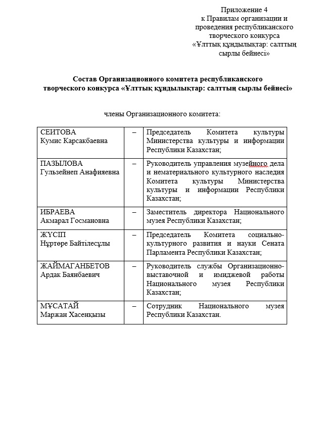 23. Для организации и проведения конкурса создается Оргкомитет в составе согласно приложению 4 к настоящим Правилам.