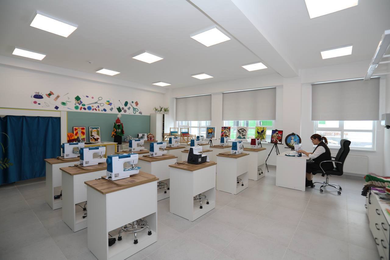 Современная школа рассчитана на 1200 учащихся. В образовательном учреждении общей площадью более 13 тысяч квадратных метров имеется 61 предметный кабинет. В их числе кабинеты дизайна и технологии, культуры питания, визуального искусства, домашней культуры, робототехники, STEM и музыки. Школа полностью оснащена необходимым оборудованием, созданы все условия для развития творческих и интеллектуальных способностей учащихся.