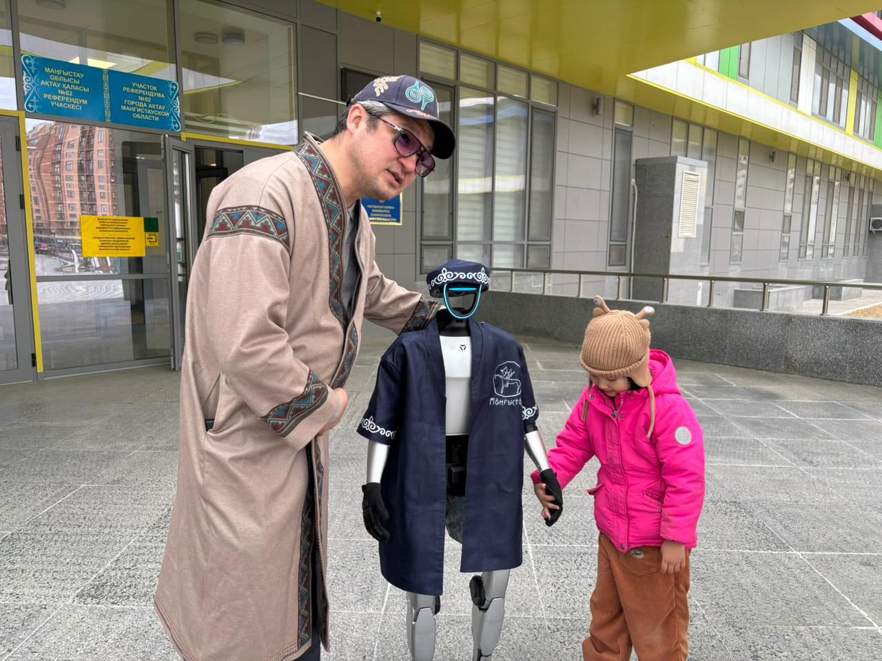 На избирательном участке в Актау атмосфера общенационального референдума приобрела необычный и по-настоящему инновационный характер. Во Дворце школьников жителей и гостей города встречал гуманоидный робот, одетый в традиционную казахскую одежду.