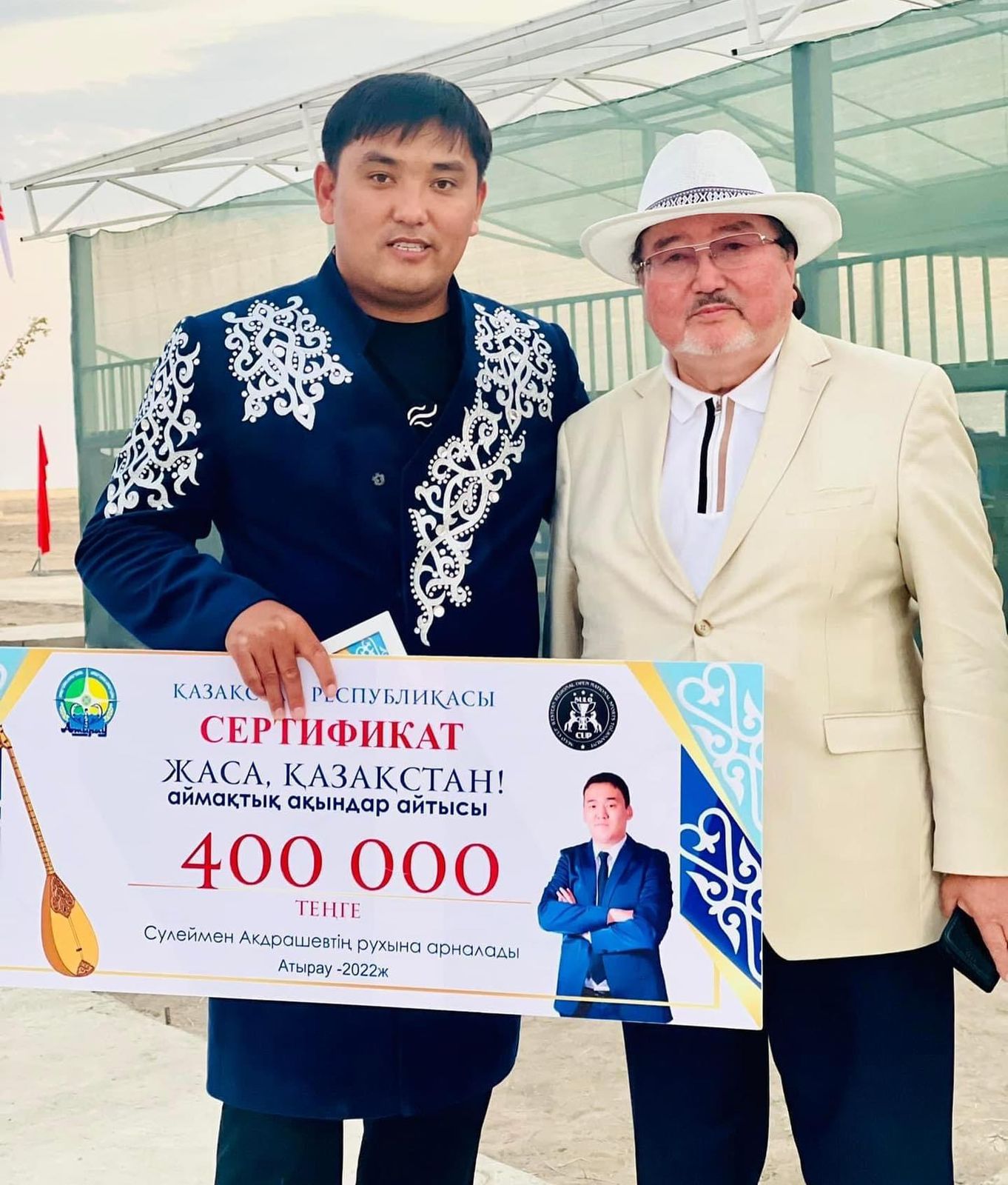Айтыс акынов «Жаса Қазақстан» проходил 28 августа в Махамбетском районе Атырауской области. Он был посвящен памяти предпринимателя Сулеймана Акдрашева, который ушел из жизни пять лет назад в 25-летнем возрасте. Молодой человек стал известен благодаря своим социальным проектам, он также поддерживал спортсменов и других талантливых людей.