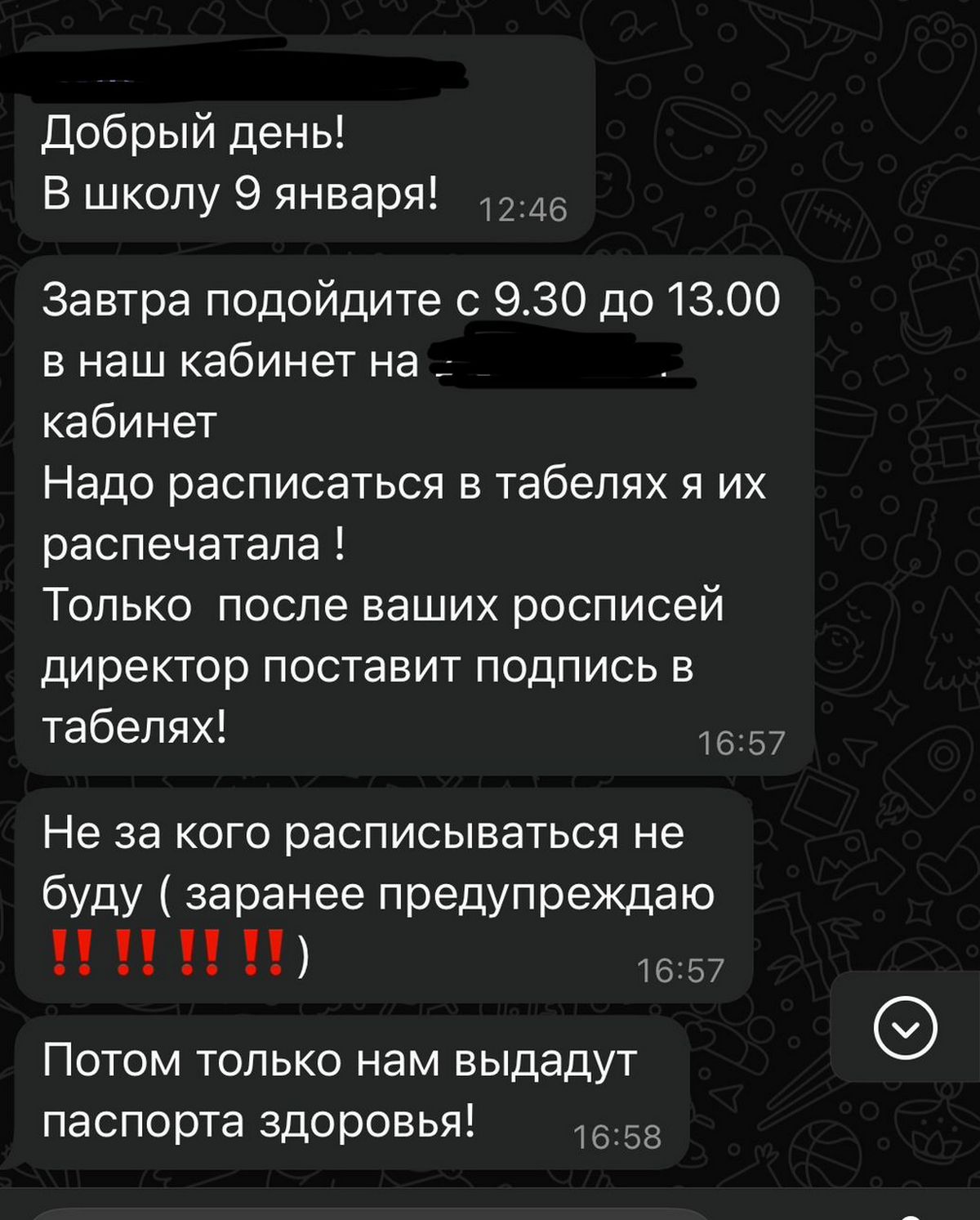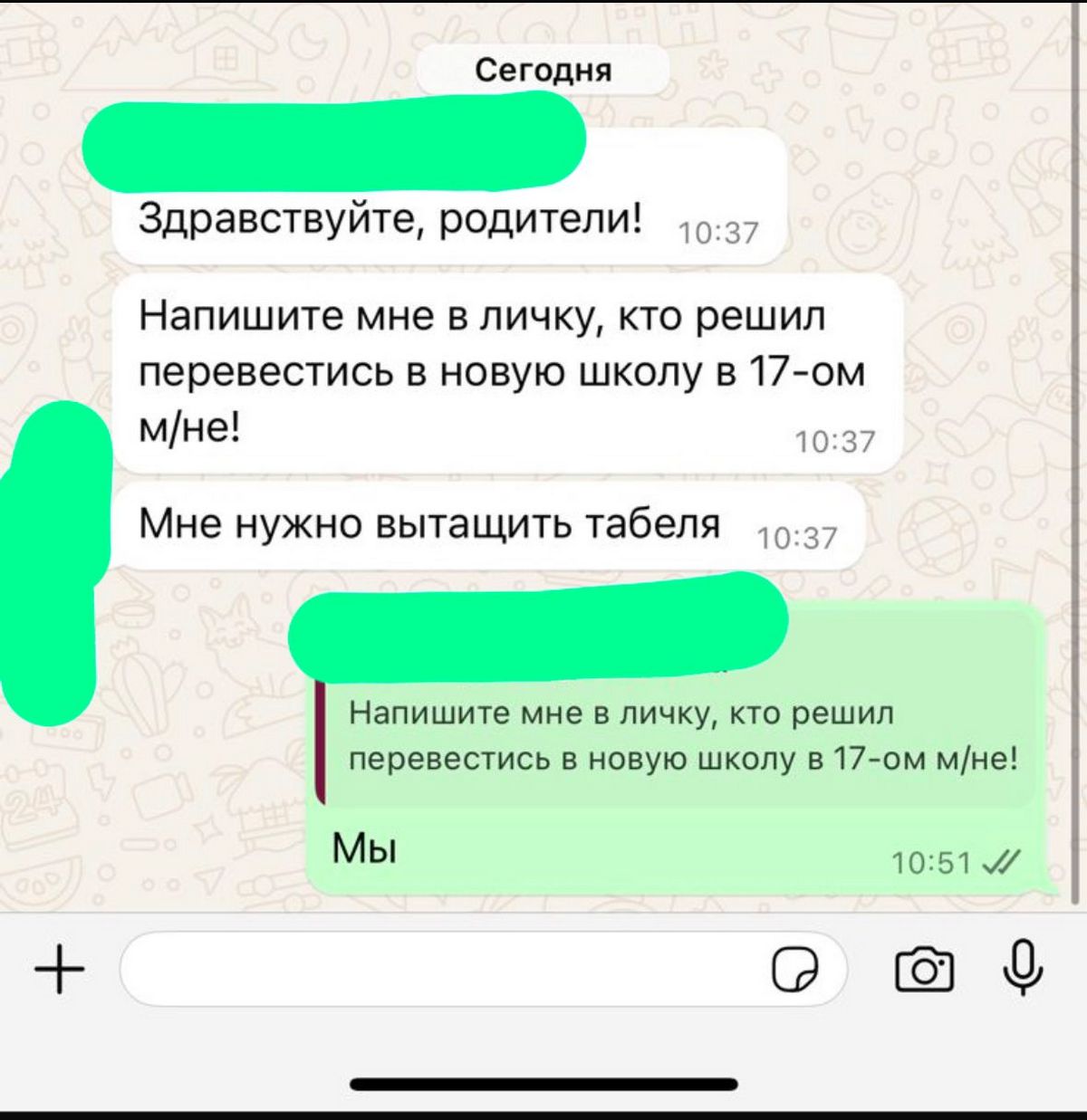 Сообщения из мессенджера родителей школьников.