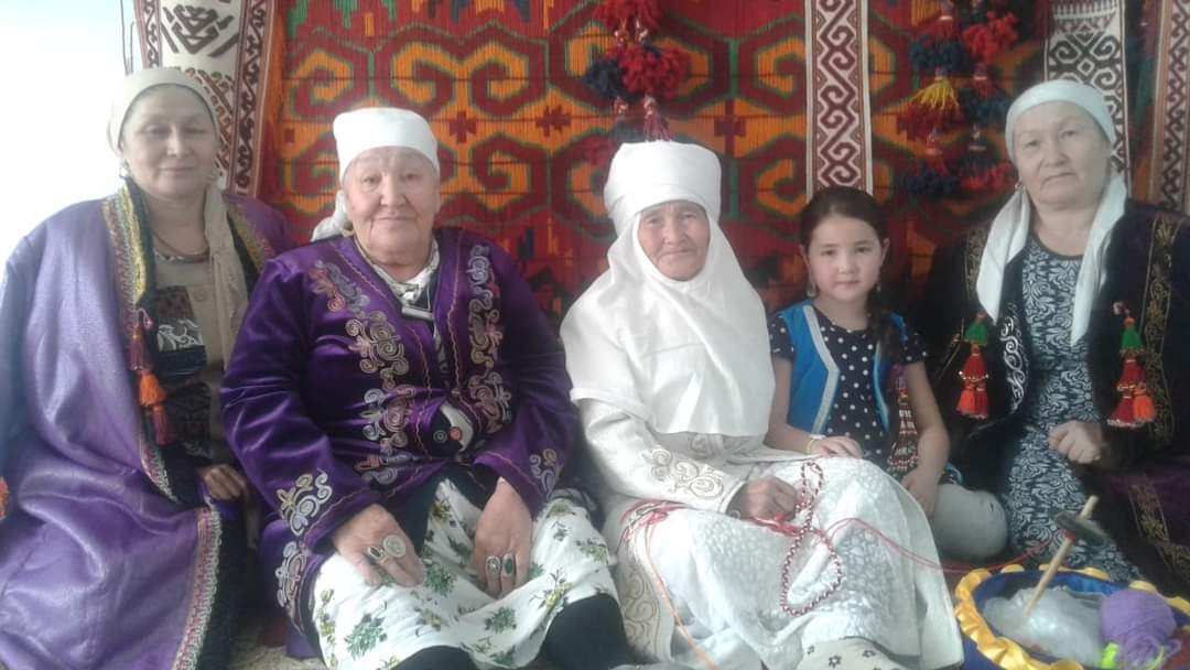 Шархат Тулемисовна - мать-героиня, родившая десятерых детей. Она говорит, что развитие национального ремесла, передача его будущим поколениям - это ее главный долг. Даже в таком преклонном возрасте вязание одежды, валяние и прядение шерсти, украшение изделия орнаментом, остается её любимым занятием.