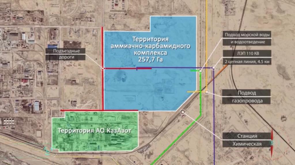 Аммиачно-карбамидный комплекс, требующий общих инвестиций около 1 млрд. долларов, будет расположен в специальной экономической зоне «Морпорт Актау» в Мангистауской области. Расположение завода обусловлено приоритетным направлением производства химической промышленности на территории экономической зоны. Строительство планируется завершить в конце 2026 года.