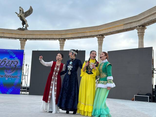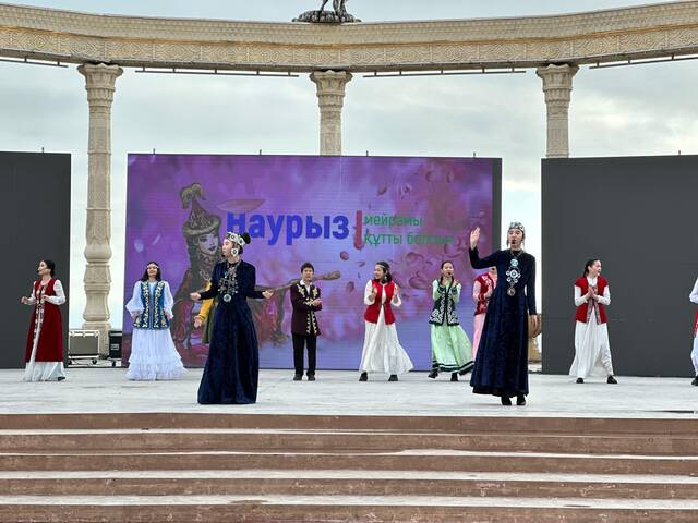 На мероприятии артисты показали национальные традиции и игры через театрализованное представление. На праздничном концерте вокальная группа «Томирис» исполнила песню «Той басталды Маңғыстауда», Гульжанар Рафхатова и Еркежан Касымова исполнили песню «Туған жер». Народный коллектив - танцевальный ансамбль «Айша қыз» исполнил танец «Каспийдің еркелері». Жасулан Таласпаев, Шолпан Берикбаева исполнили произведение «Келді, Наурыз». Артисты угощали зрителей баурсаками.