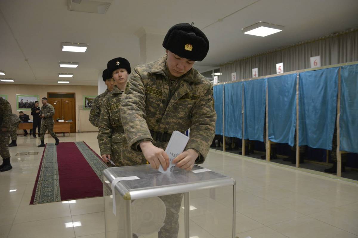 Большинство участников голосуют впервые. Один из них - рядовой Динмухамед Азберген, уроженец Алматинской области.