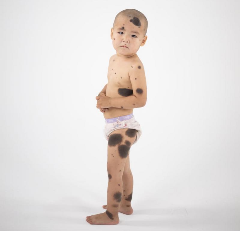 У девочки редкое заболевание, следы которого покрывают все тело. Родители Жасмин говорят, что меланоформный невус способен перерасти в рак кожи, если не провести дорогостоящее лечение.
