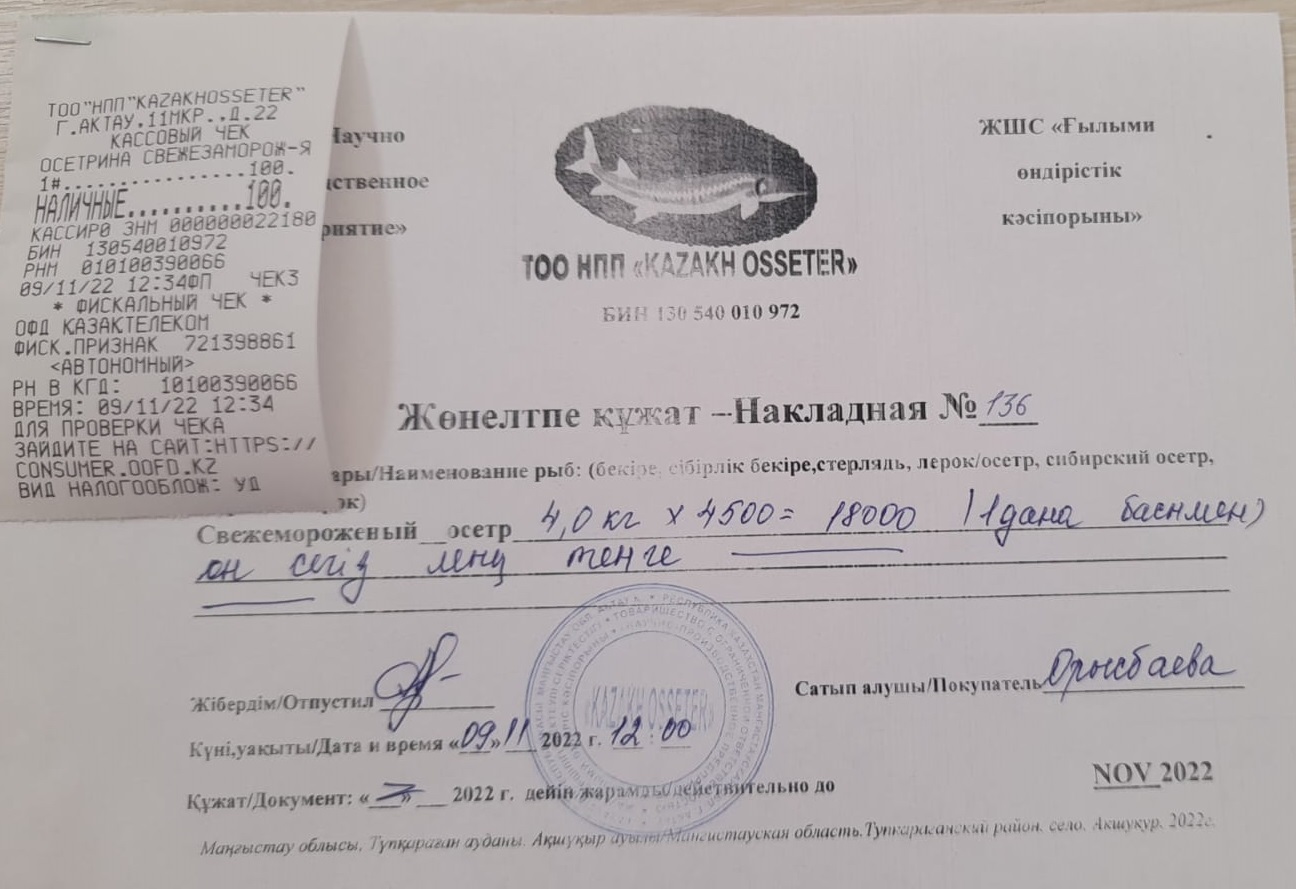 Какой документ на рыбу необходимо будет получить при покупке, чтобы не попасть под статью Уголовного кодекса за незаконную перевозку осетра, рассказала Турсынгуль Жакыпова, директор ТОО «НПП «Казах осетр».