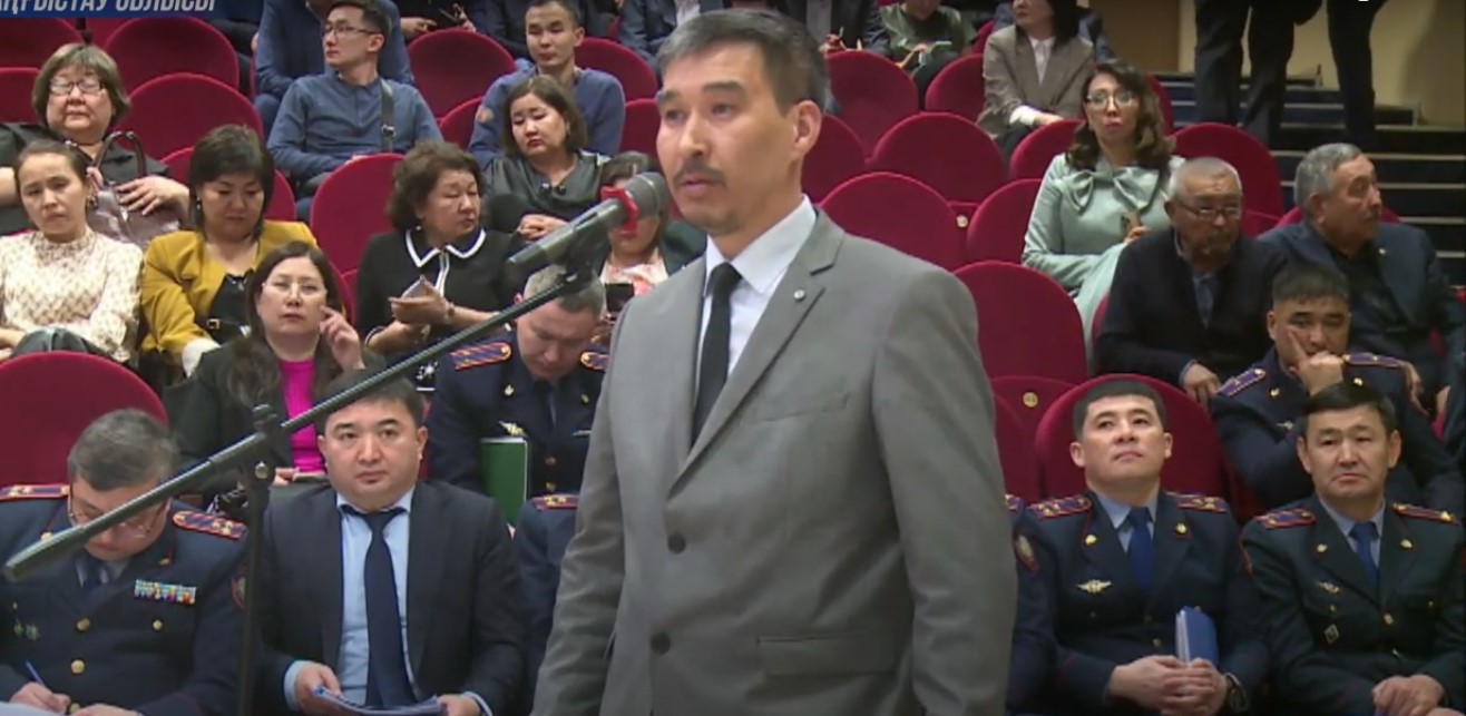 Ерлан Картбаев самым первым задал вопросы министру Ахметжанову. Он рассказал о крышевании среди полицейских, отсутствии условий для выпускников детского дома, а также незаконной торговле алкогольной продукцией в ночное время и плохом освещении в городе. Кроме того, главе МВД рассказали об отсутствии в Актау уличных туалетов и наличии множества участков со «слепыми зонами», где отсутствуют камеры видеонаблюдения.