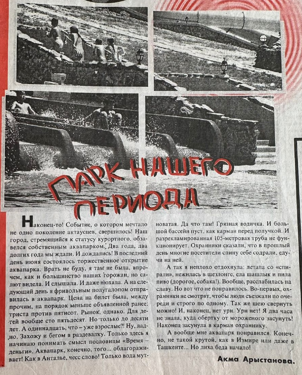 В последний день июня 2000 года в Актау впервые открылся аквапарк в 9А микрорайоне. Тогда это было значительное событие для нашего маленького города.