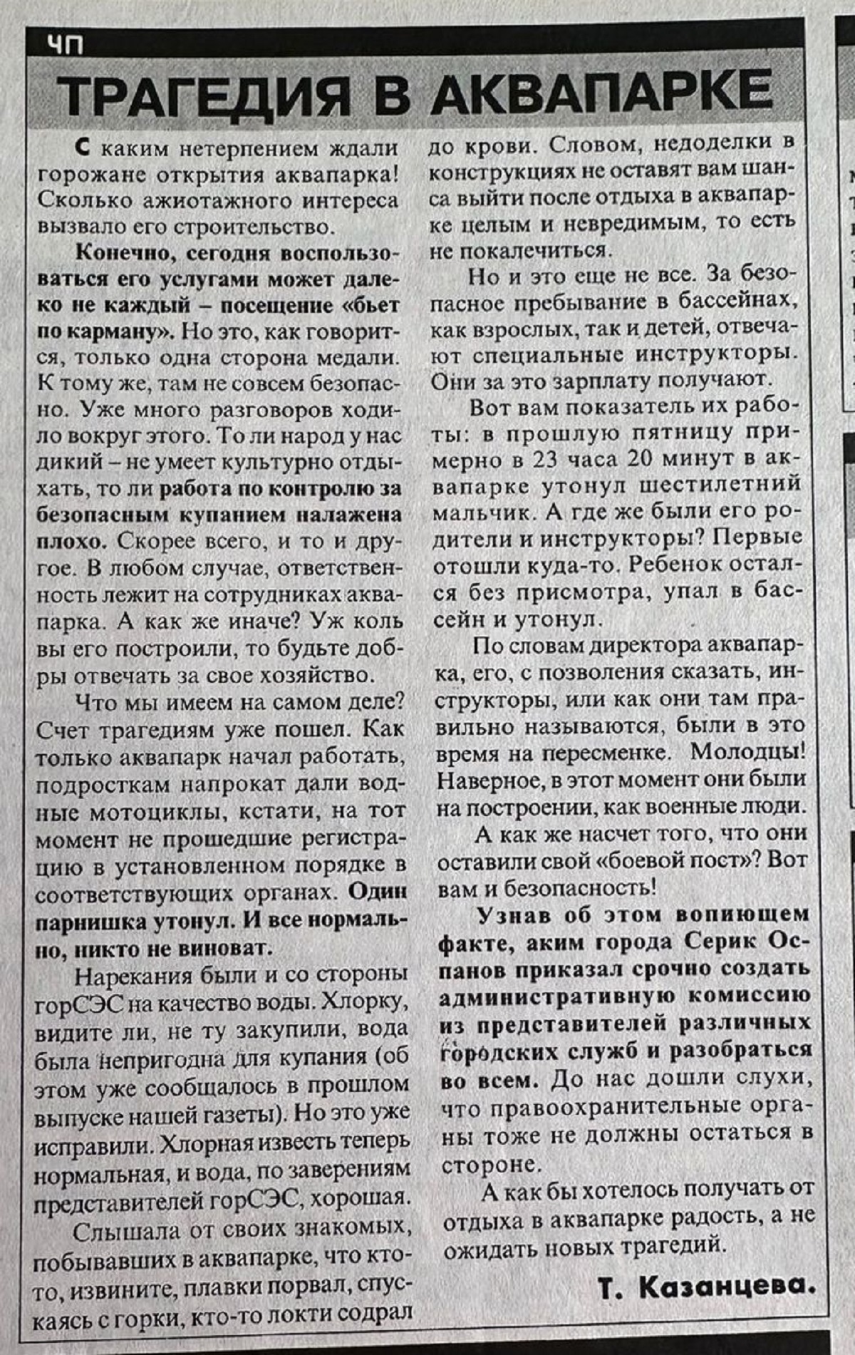 Также в архивах мы обнаружили информацию о трагических событиях, которые произошли в первый год работы аквапарка.
