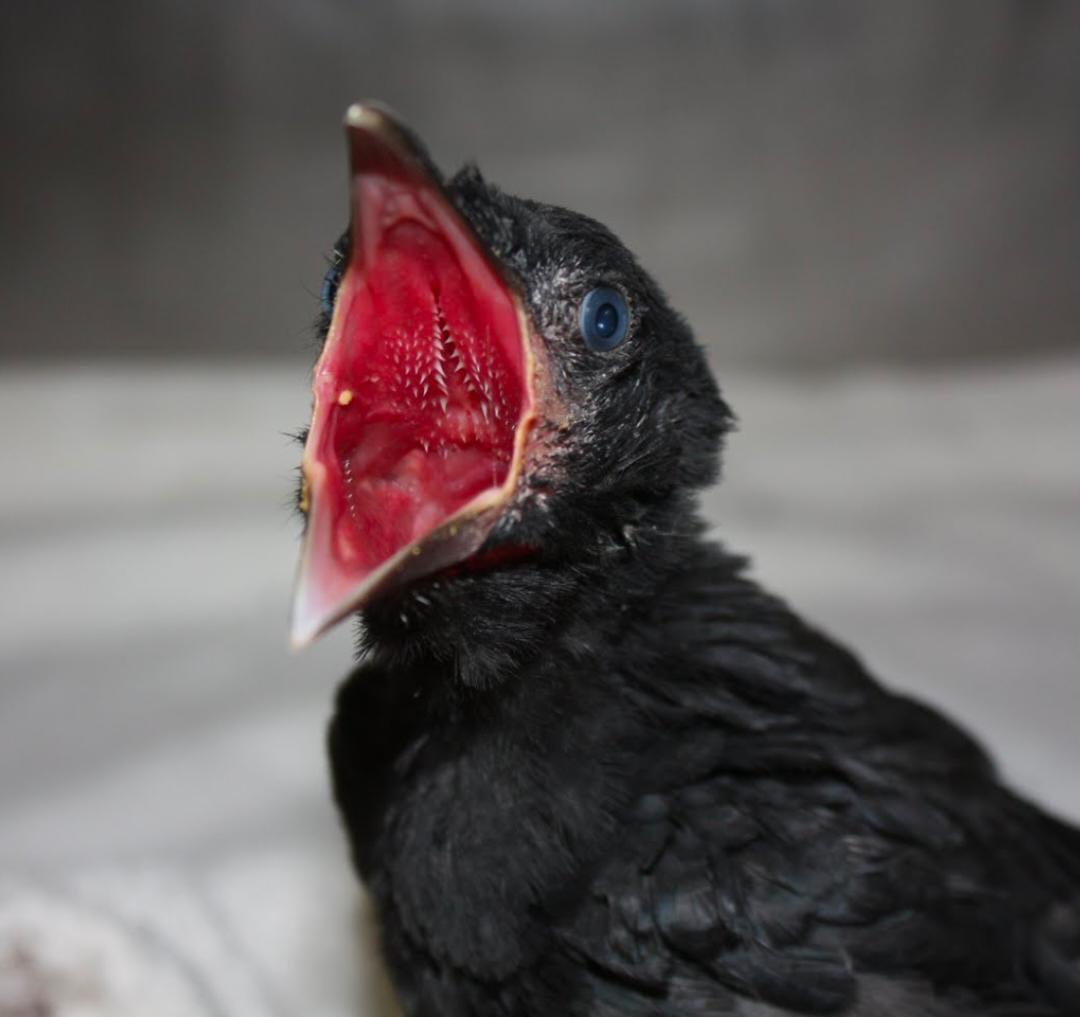 Ожидания не совпали с реальностью. Птенец оказался вовсе не маленьким: по размеру, как взрослый, только с голубыми глазами, которые затем стали чёрными. Клюв с возрастом тоже потемнел, а взмах крыла стал шире. Вороны считаются птенцами до трёх лет – сейчас Брану четыре, он уже подросток. Вылупился он, кстати, 1 апреля.