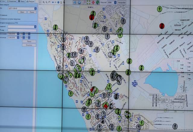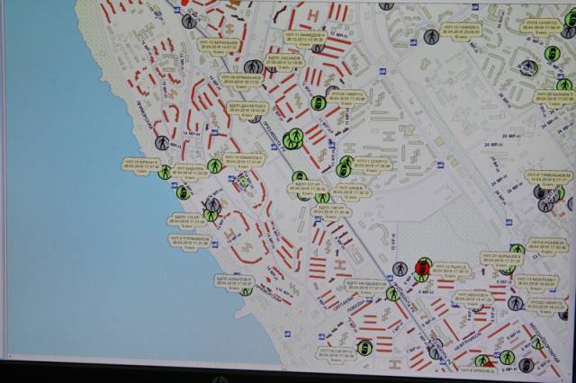 Он показывает нам, как на экране по электронной карте города хаотически передвигаются разноцветные маячки – это пешие наряды полиции и автопатрули. Если наряд свободен, он высвечивается на табло зелёным цветом. Если уже находится на месте происшествия – то красным. Обмануть систему контроля ЦОУ практически невозможно, так как каждый автопатруль оборудован системой GPS-навигации. Сотрудники Центра могут контролировать наряды и автопатрули как по радиосвязи, так и визуально - в онлайн-режиме с помощью карты.