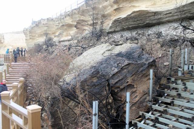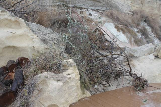 А что там сверху стоит на скале? Видно что забор какой то. Может окурок бросил кто то сверху, или например один из жителей наскальных домов?)