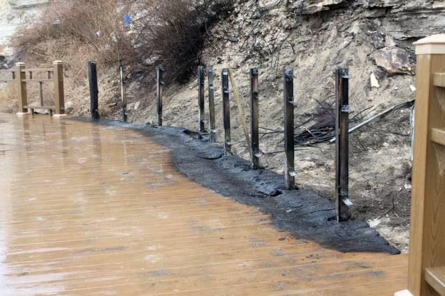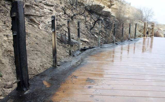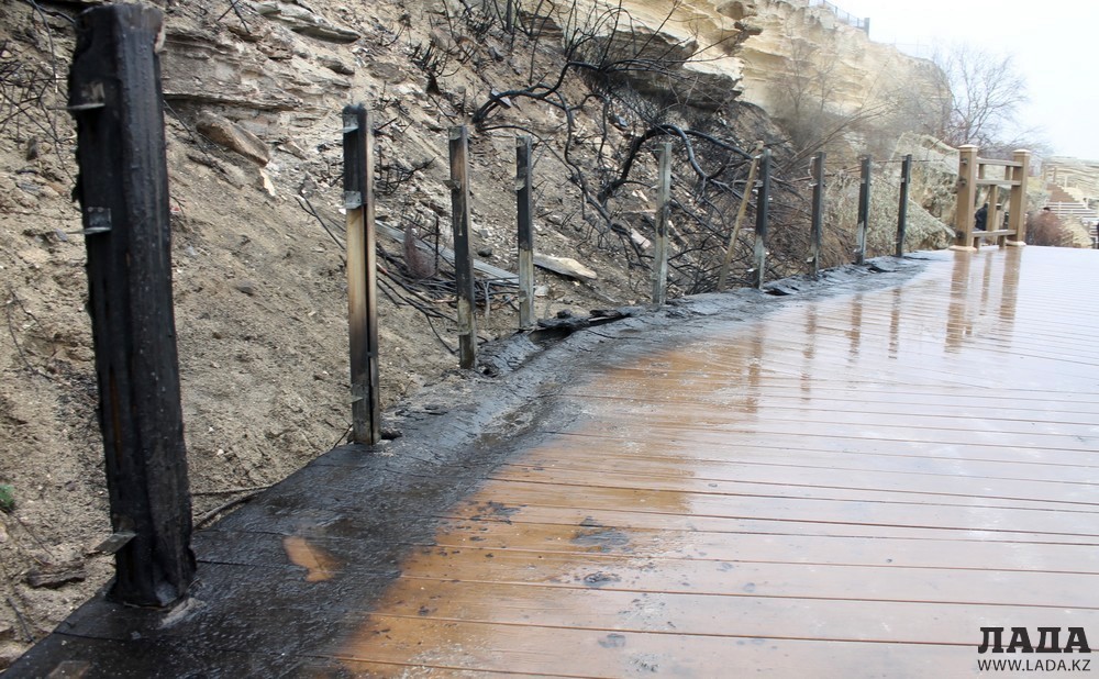 По словам автора проекта Марата Сюникова, неизвестные подожгли камыш и шиповник возле «Скальной тропы».