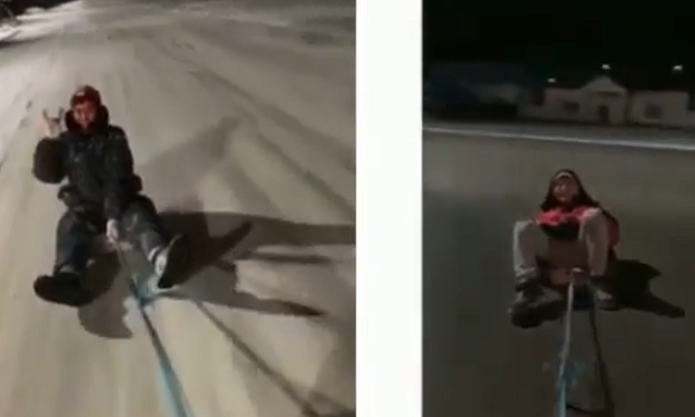 Школьники из Бейнеу катались на санях, привязанных к движущемуся автомобилю. За рулём транспортного средства находился их сверстник.