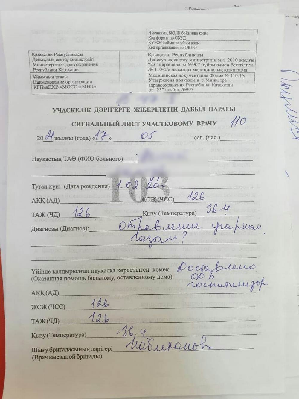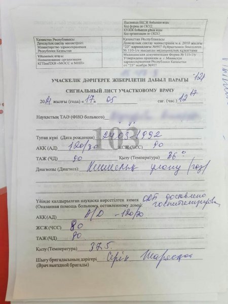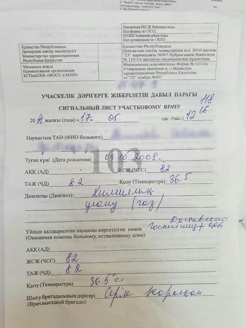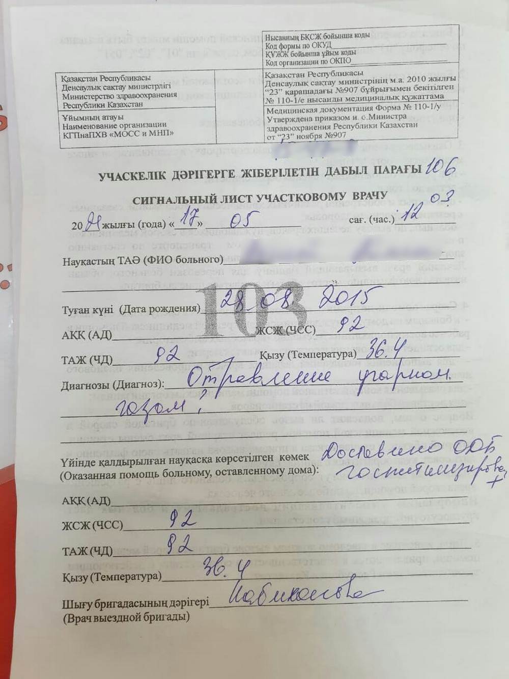 - Никаких бумаг в итоге он мне не дал. Я ему сказала о симптомах детей и спросила, может ли это быть отравлением, на что он ответил, что нет. После ухода он перезвонил и посоветовал дать детям молока. После этого рвота участилась. Я позвонила ему и сообщила о вероятном отравлении. Асет предложил обратиться в медицинский центр «Нейрон» и вежливо попросил, чтобы я сказала врачам, якобы это я сама забыла выключить газ. Я была в шоке. Начала звонить детской медсестре, но та не отвечала, пришлось обращаться в 103. Скорая помощь прибыла через 15 минут, нас осмотрели. В это же время пришли какие-то люди из газовой службы, отрезали газ, заполнили акт и дали подписать несколько бумаг. Я расписалась. Нас госпитализировали в детскую областную больницу, и детей подключили к системе. Рвота продолжилась и на следующий день, - делится Дильфуза.
