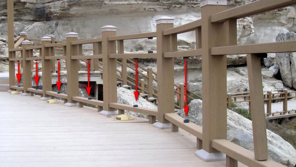 Отсутствуют почти все нижние перегородки по обе стороны тропы.