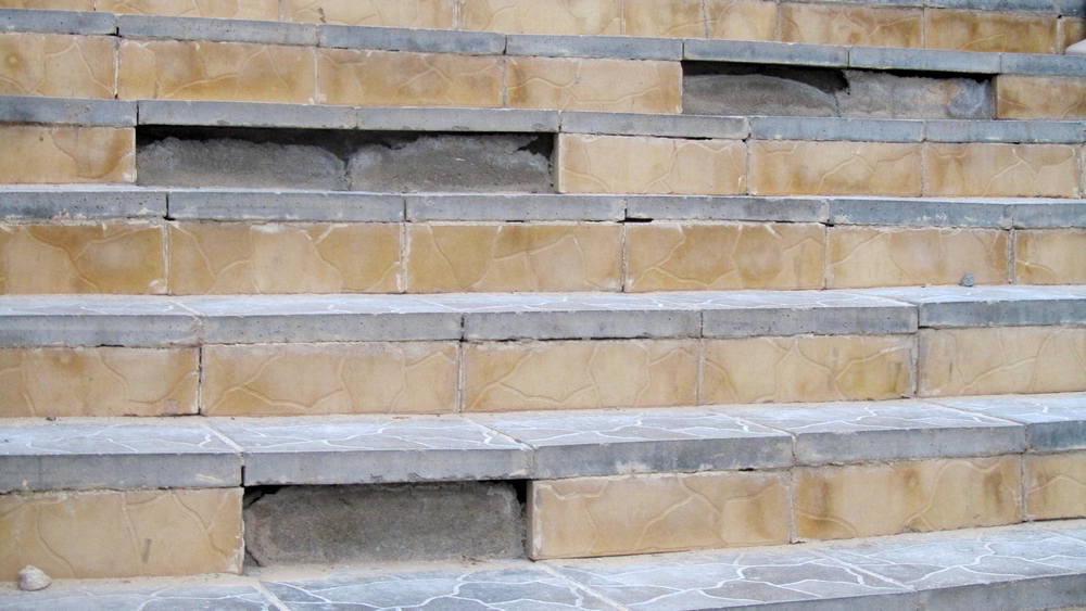 При подъеме на смотровую площадку во многих местах отпала плитка на ступенях.