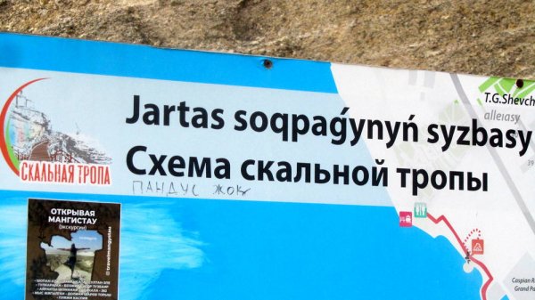 По окончании прогулки на плакате со схемой «Скальной тропы» мы увидели надпись «Пандус жоқ».