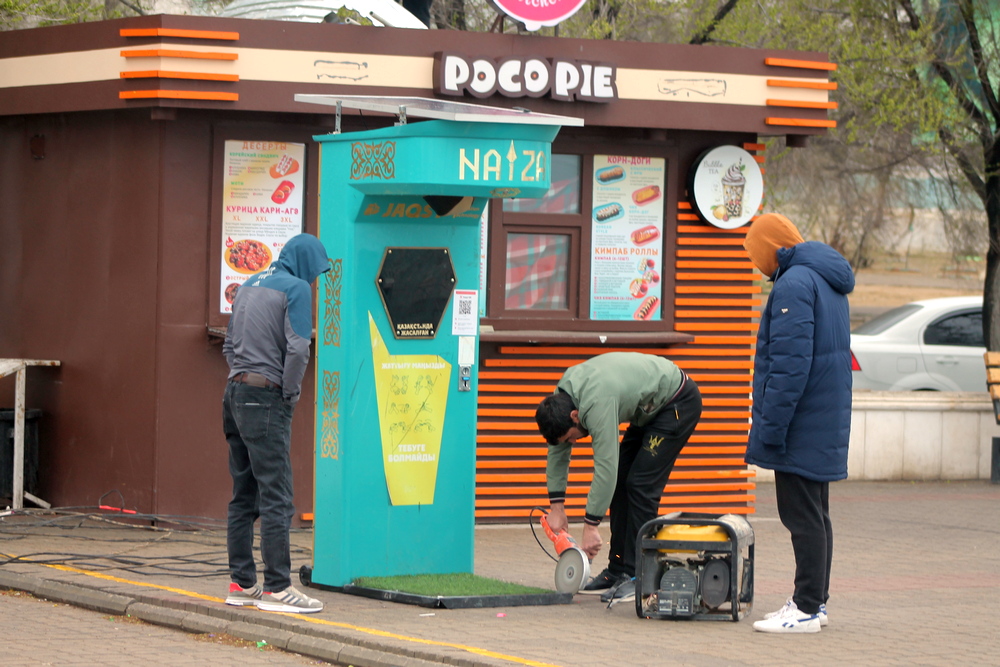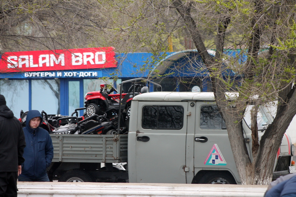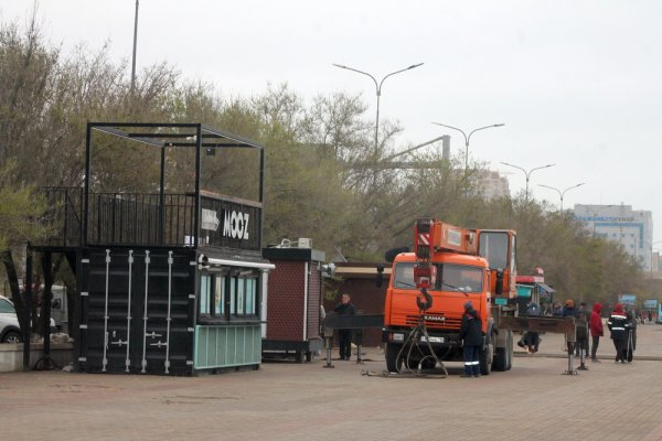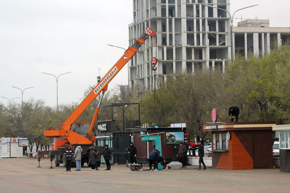 Напротив торгового центра «Астана» мы увидели спецтехнику, которая грузила оставшиеся павильоны.