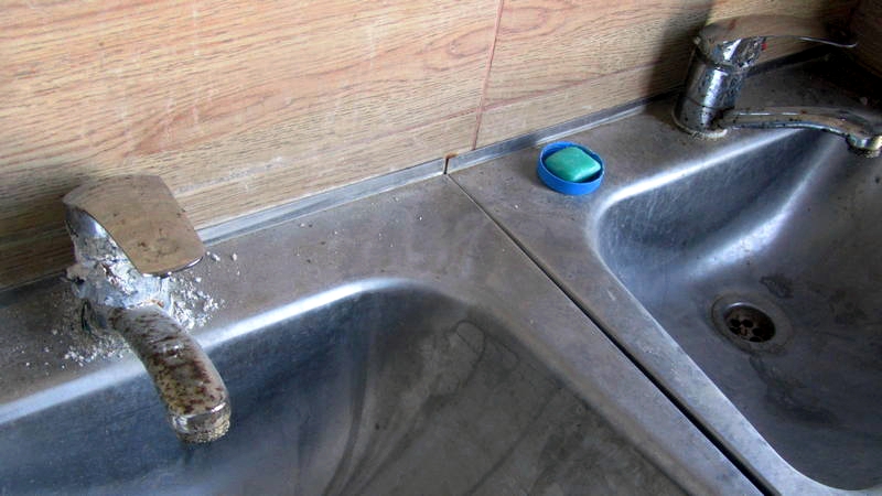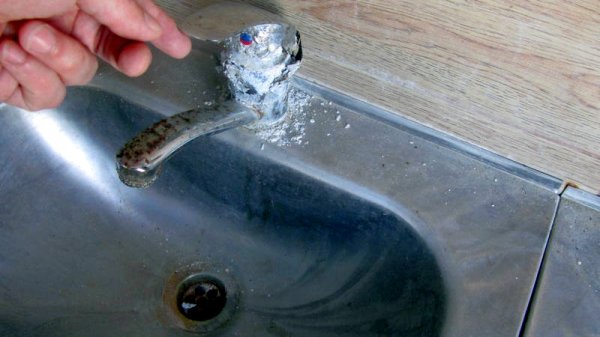 На кранах в раковине образовался толстый налет.