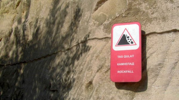 Почти на середине тропы имеется опасность падения камней - видны трещины.